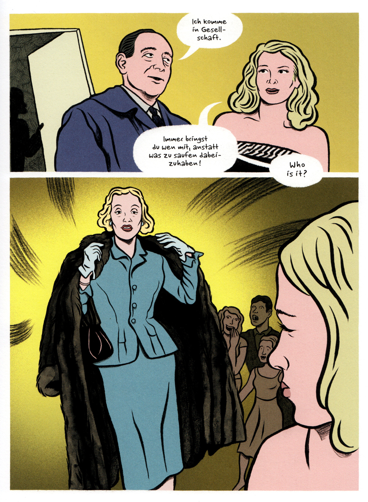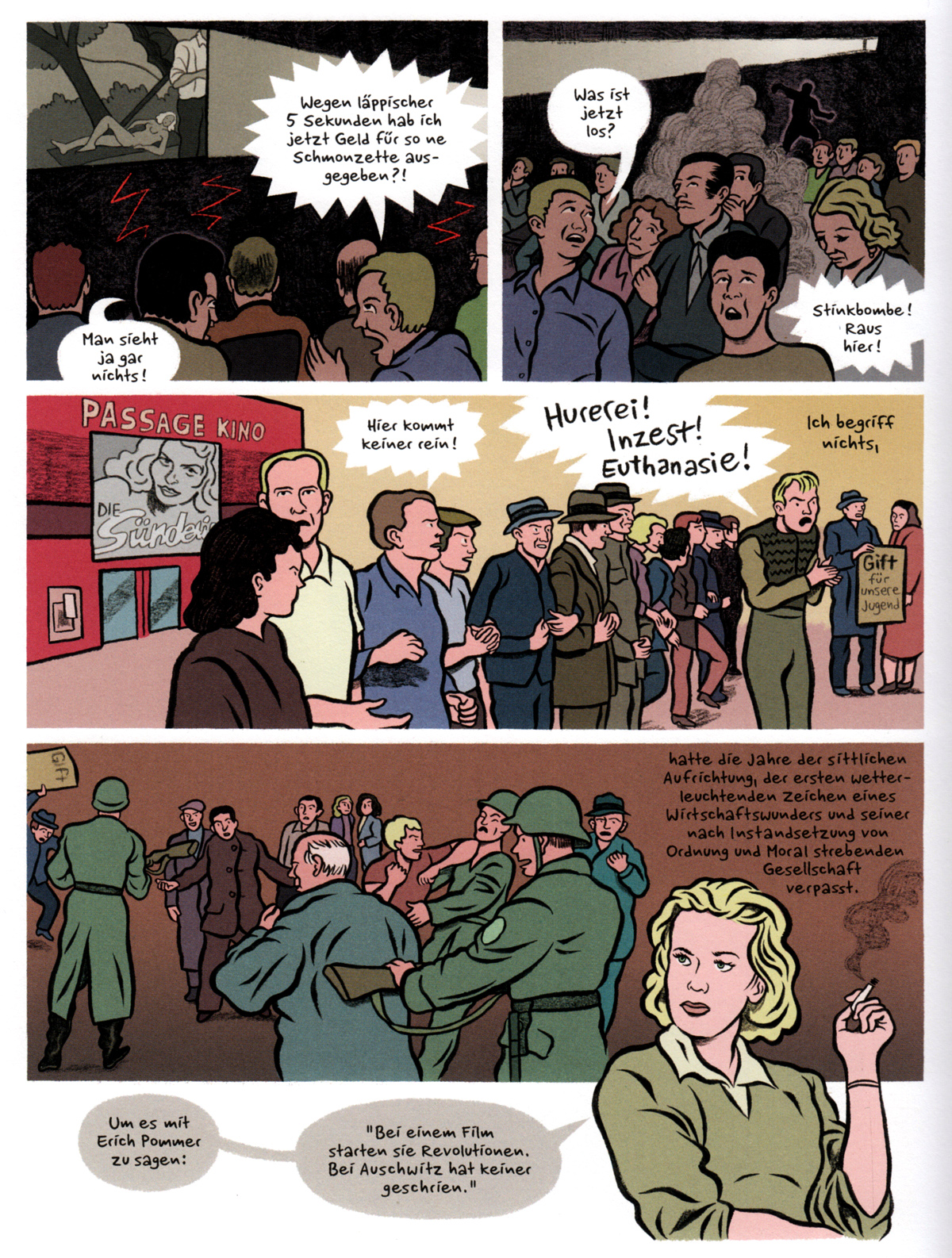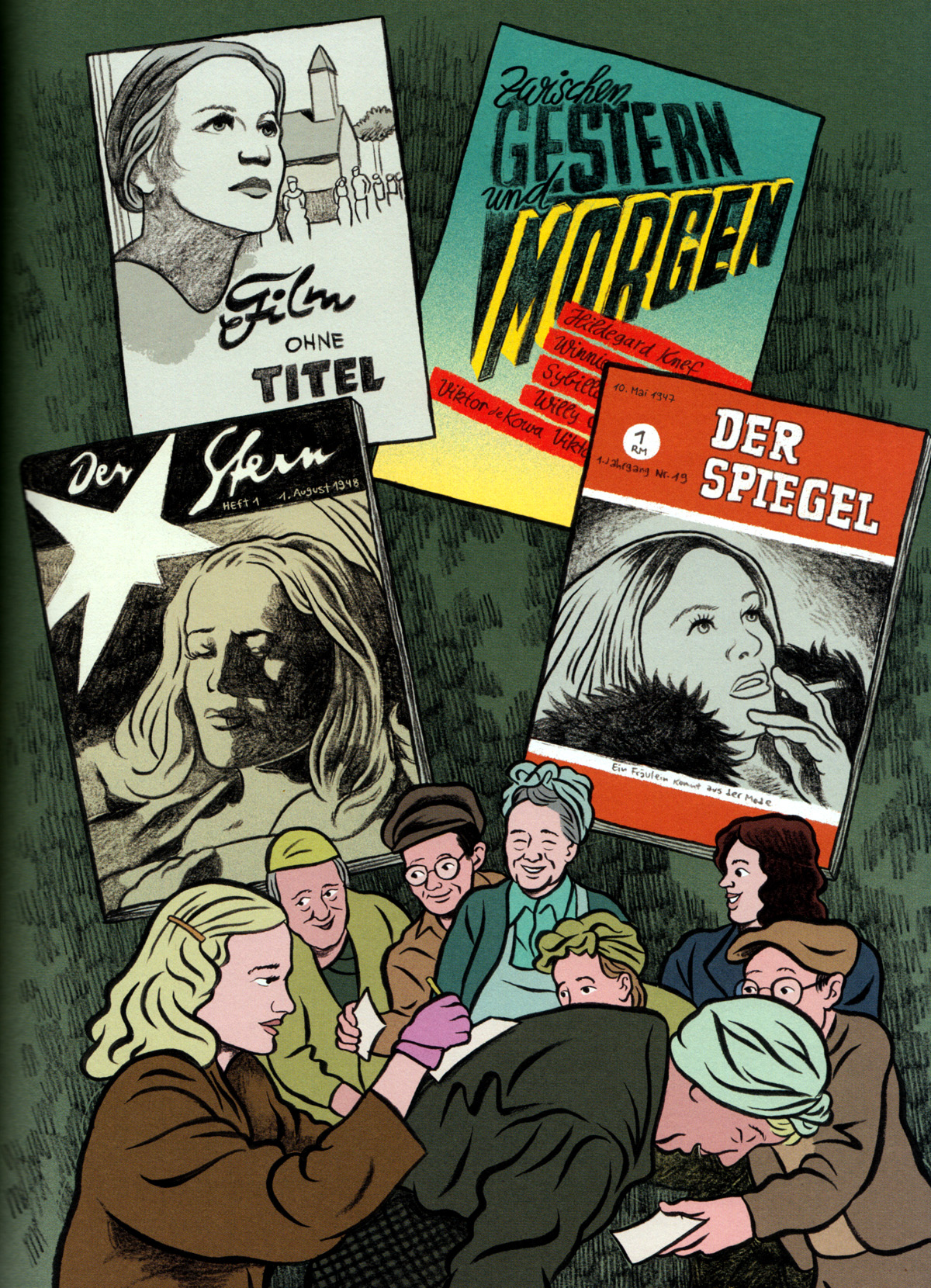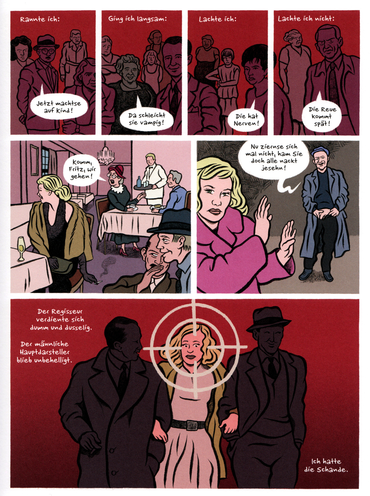 Das sagt uns der Comic nicht. Vielmehr hat Knef erneut Glück: Da sie noch nicht im Nazi-Kino gedreht hat, wird sie mit ihren Rollen in „Die Mörder sind unter uns“ und „Zwischen Gestern und Morgen“ der erste weibliche Filmstar des jungen Nachkriegsdeutschlands.