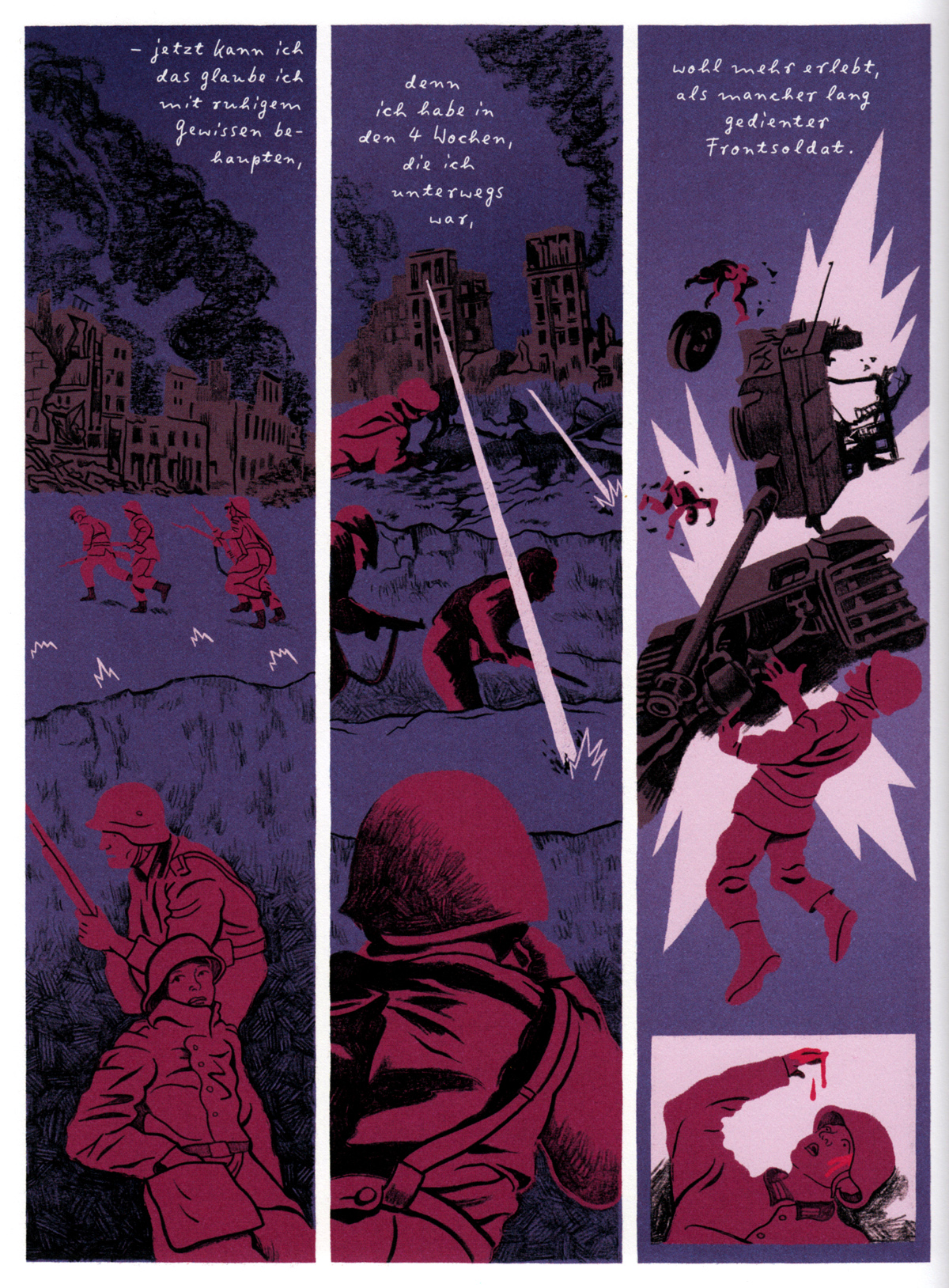 Moritz Stetter hat sie konzipiert und illustriert – und es geht gleich wild los: Von Adam und Eva schalten wir zum Neandertaler und weiter zu Hitler. Soldaten marschieren, Bomben fallen, Apokalypse.