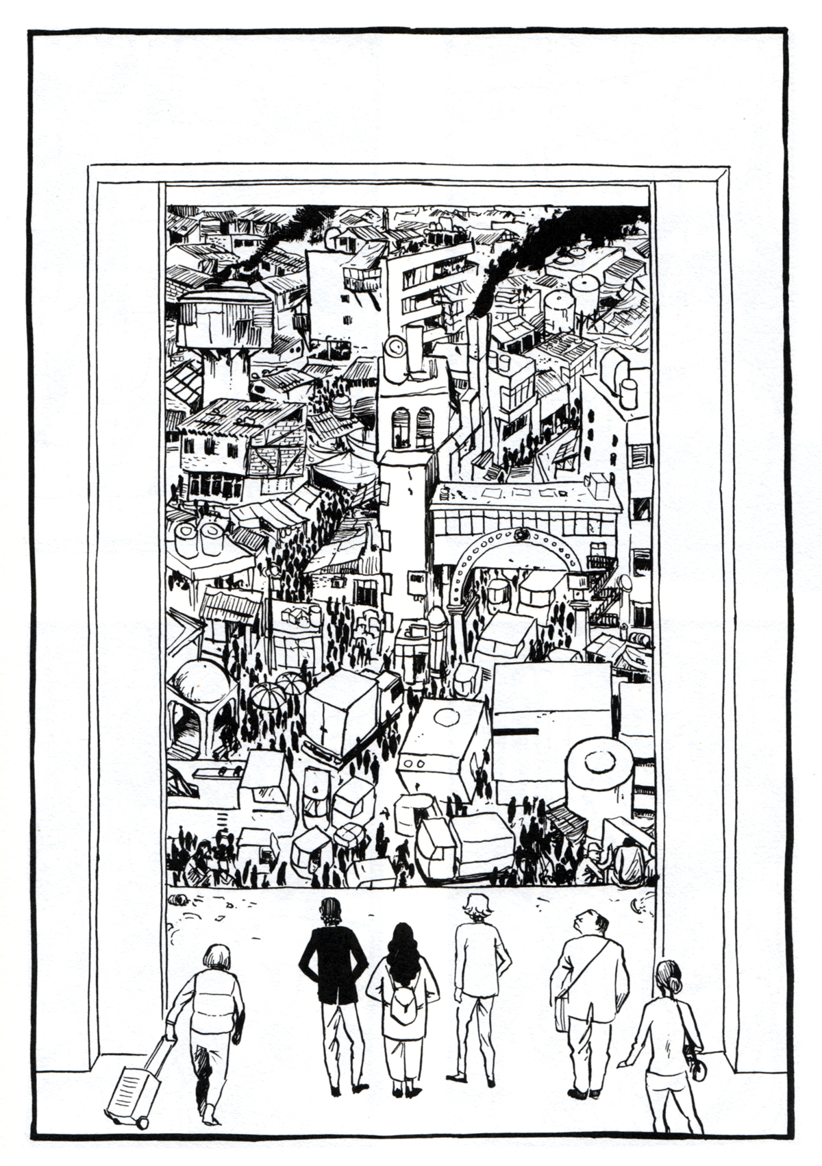 Doch LA VILLE und das Vorgängeralbum LA JUNGLE von 2022 präsentieren zeitrelevante Themen wie Kapitalismus und Migration in klassischem Schwarzweiß – und mich wundert, dass diese Comics keinen deutschen Verlag gefunden haben.