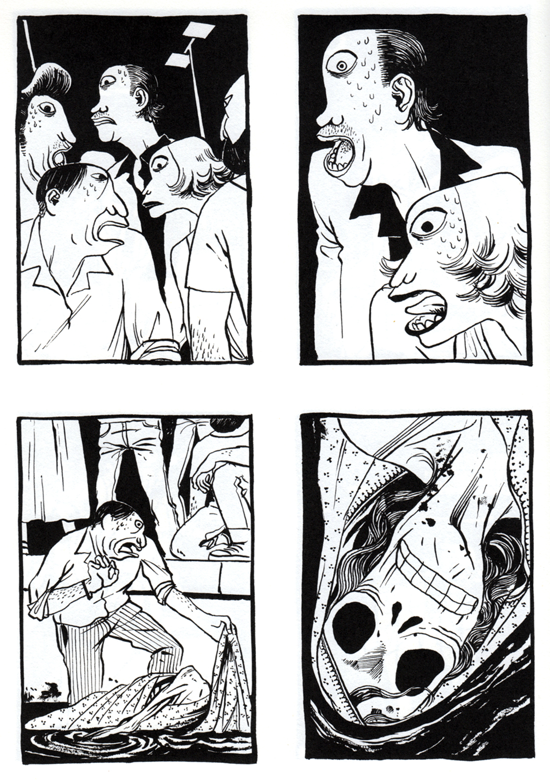 Die Figuren, die Autor und Zeichner Nicolas Presl meist im Profil entwirft, sind krass anzusehen: die Augen kleben hoch oben in der Stirn, die Nasen wölben sich kaskadenförmig hinab und die Münder sind aufgeschnitten wie Obst.