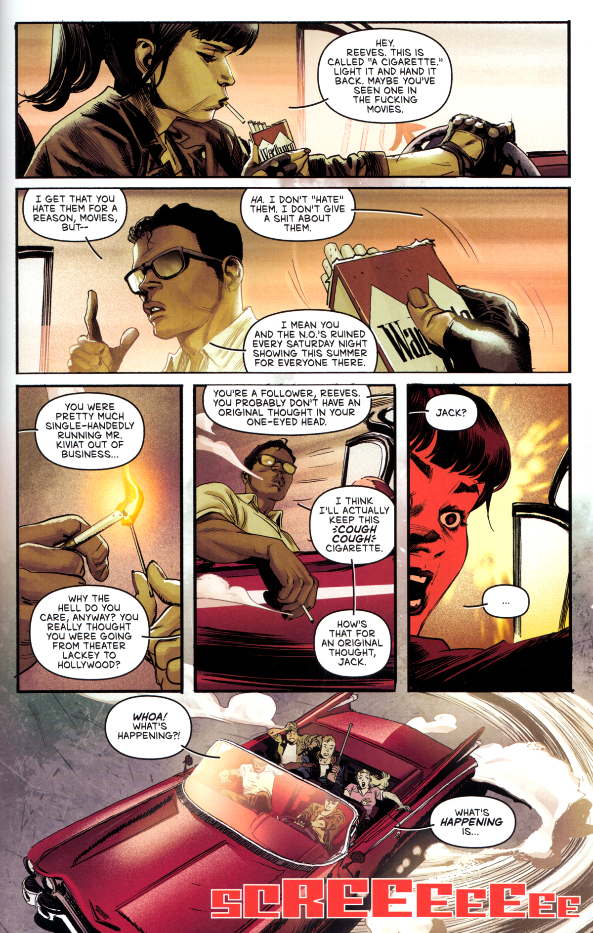 Das ist ein schon überdeutlicher Hinweis auf die vorkommenden Filmzitate von „Krieg der Welten“ (die Aliens in ihren Kampfmaschinen) über „Denn sie wissen nicht, was sie tun“ (jugendliche Gangs und Rituale wie Autorennen) bis hin zu „Formicula“ (die radioaktiv gewachsenen Insekten).