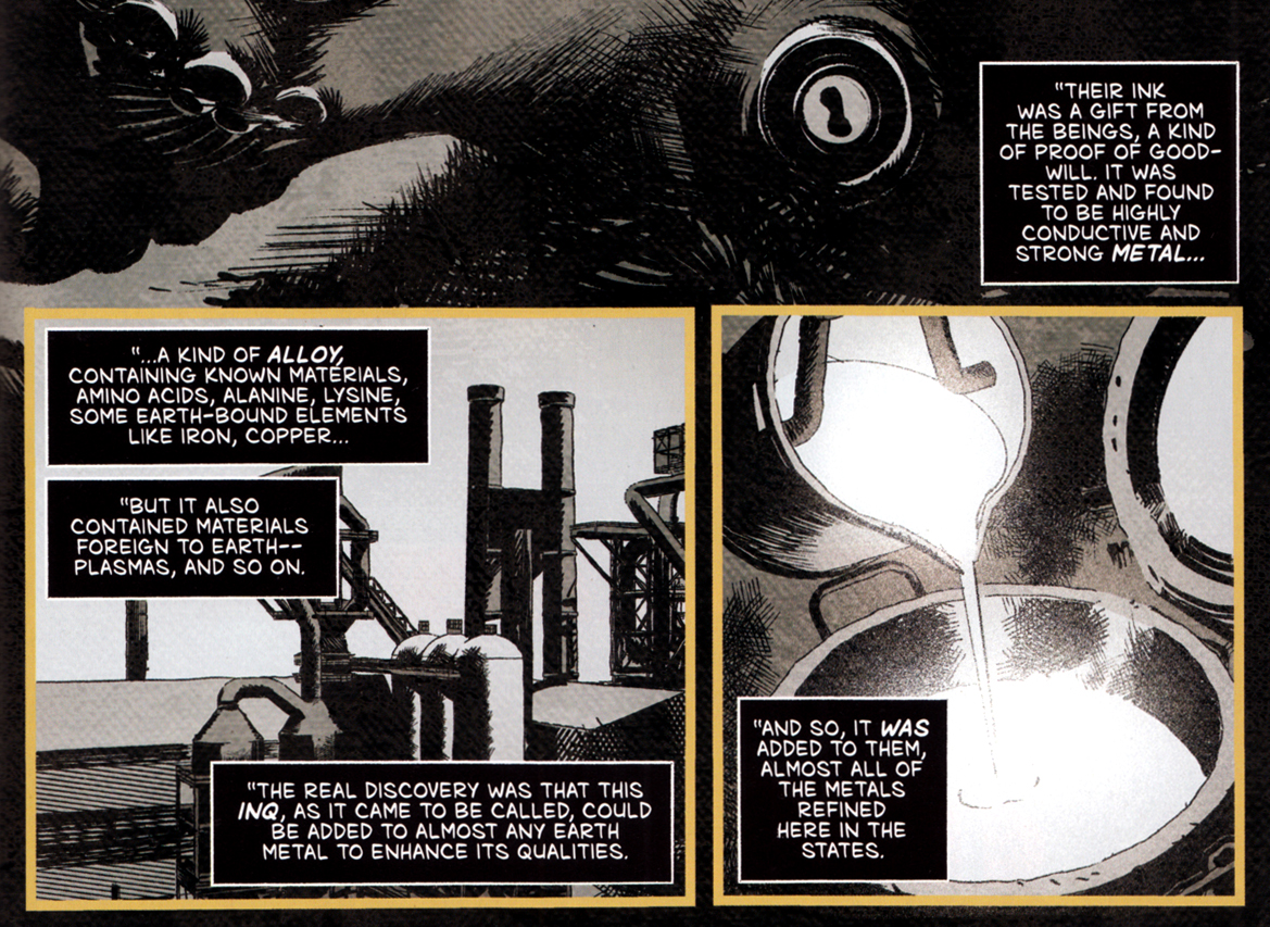Die Menschen haben mit dieser Chemikalie ihre Waffen und etliche Gebrauchsgegenstände veredelt. Allerdings können die Aliens diese Produkte programmieren und ihnen Eigenschaften zuschreiben – wie eben atomresistente Schultische!