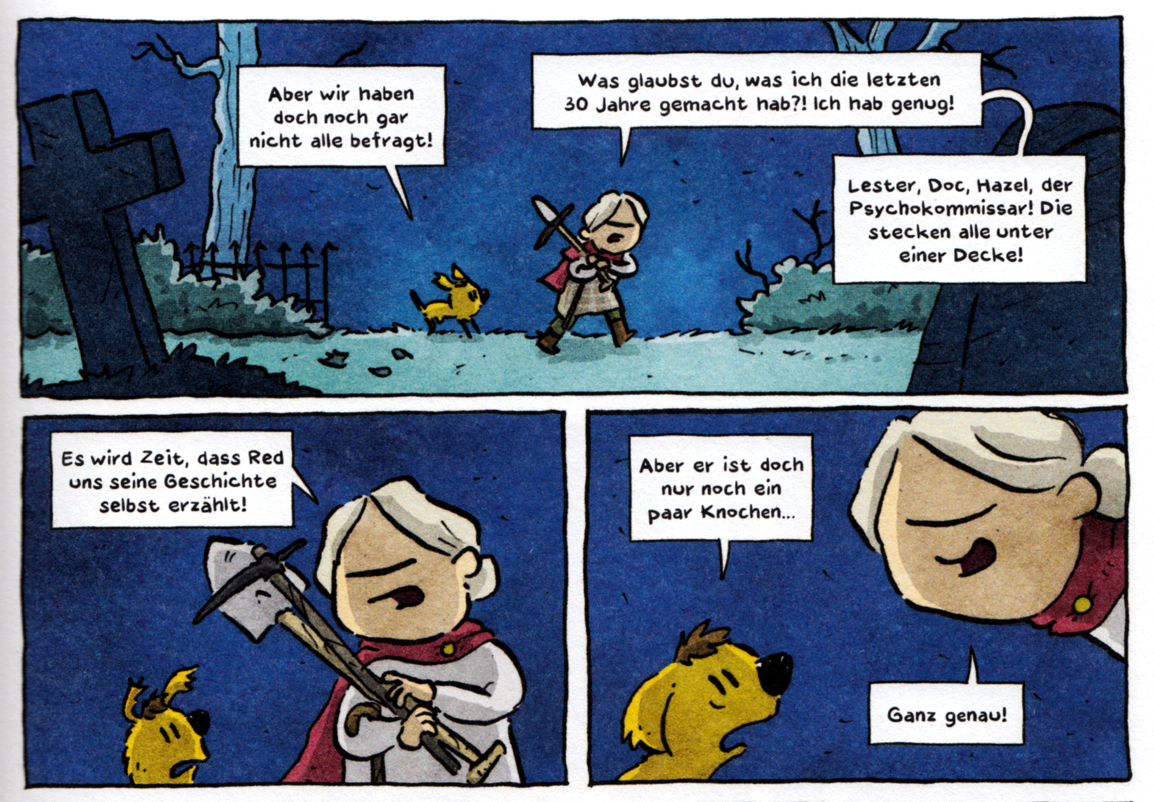 Zugutehalten muss man Mark, dass sie sich mit RED ins Subgenre der Tierkrimis begibt, wo sie ihre Fähigkeiten ausspielen kann. Hier ermitteln Tiere unter sich oder in Kombination mit Menschen.