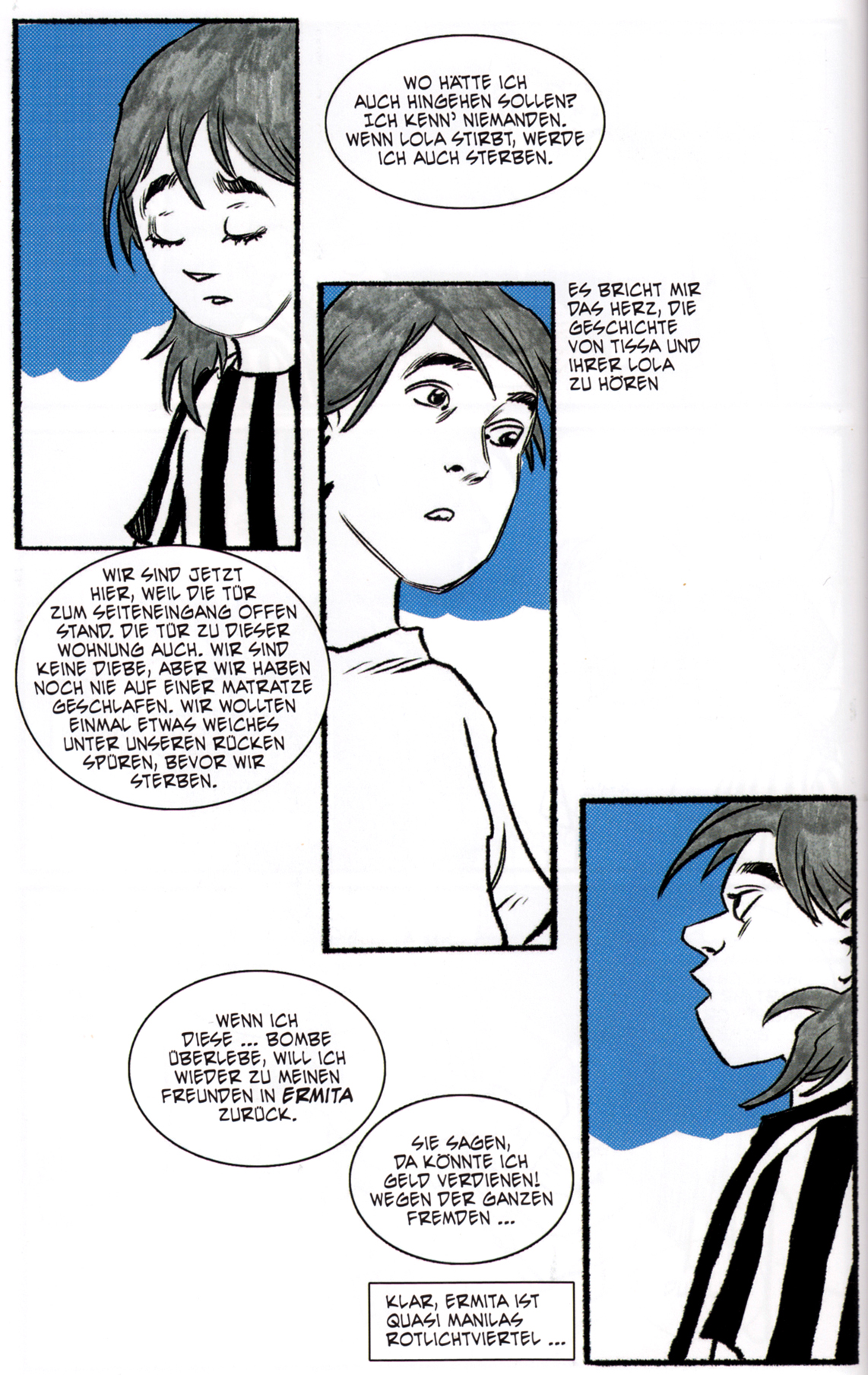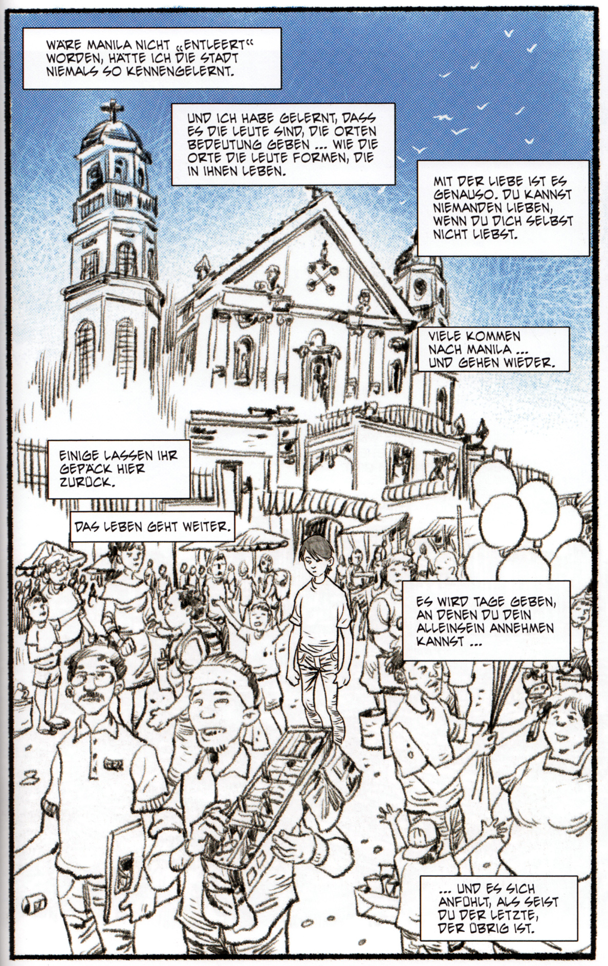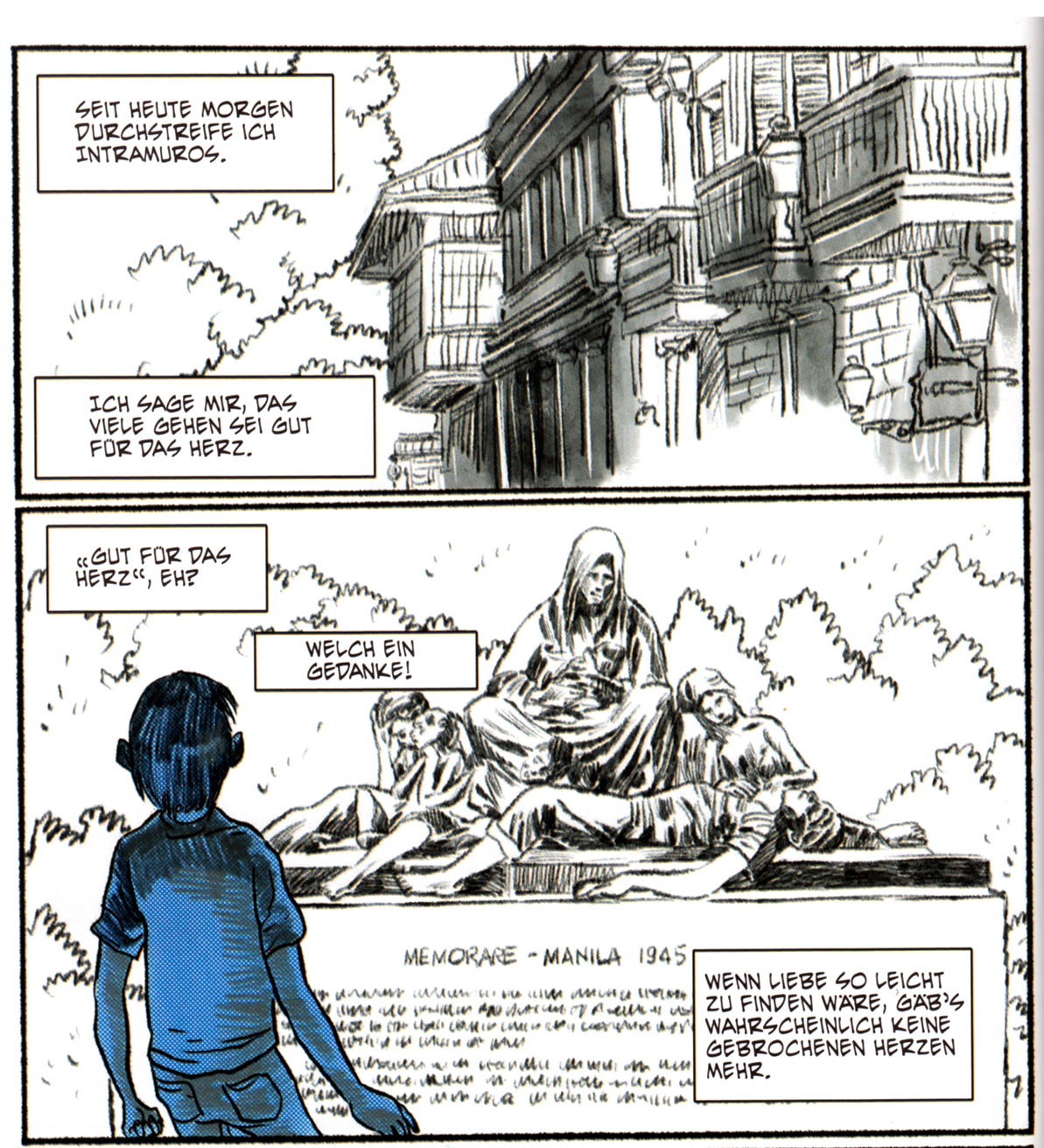 Ich applaudiere dem Dantes-Verlag, der dieses leise Werk zu verlegen wagt. Verlagsleiter Josh hat sein Herz für die Philippinen entdeckt, dieser Inselstaat ist übrigens eine Nation mit langer Comictradition.