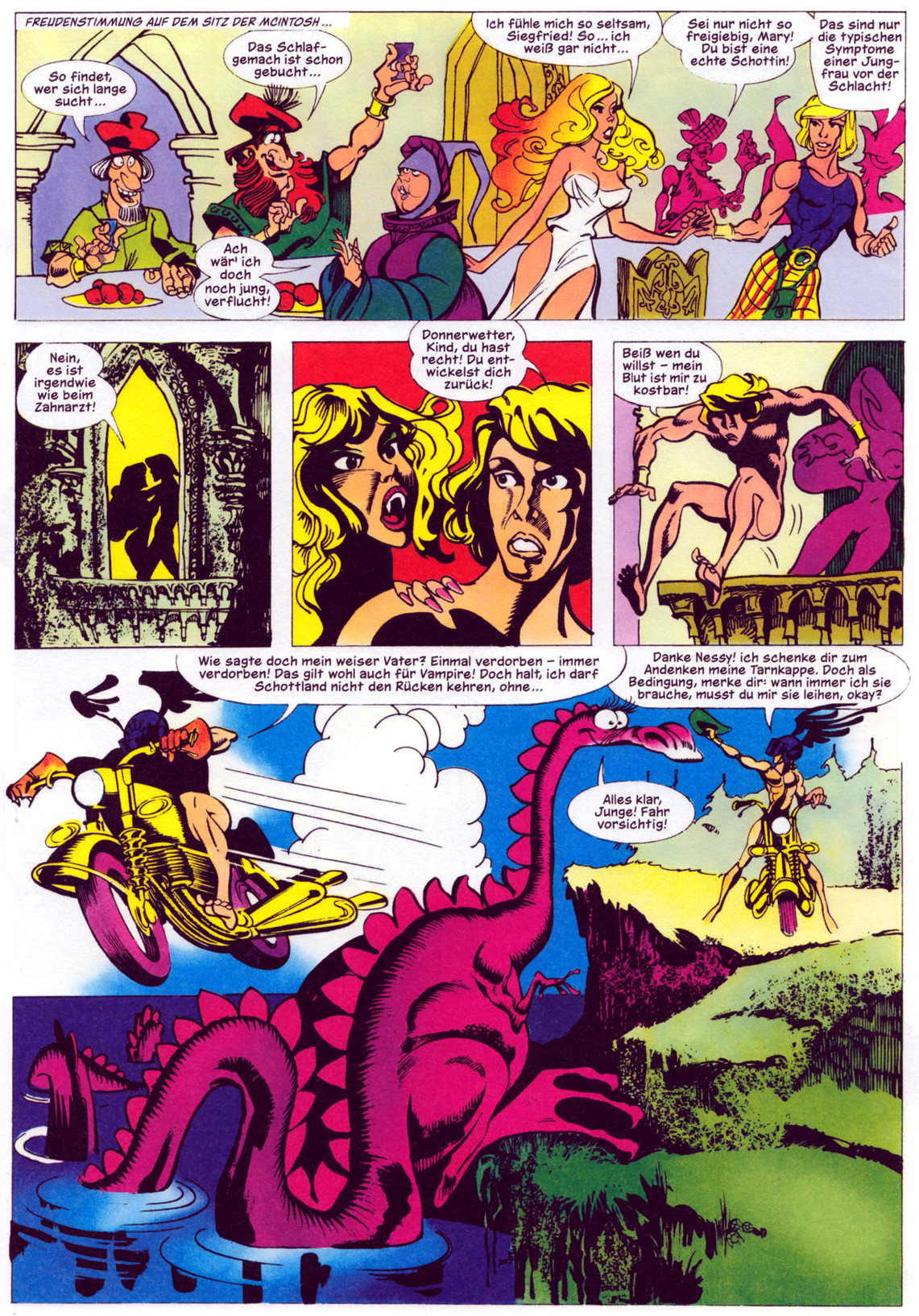 Unser Held wird nach Schottland gerufen, um dort den McIntoshs seinen starken Arm zu leihen, die vom McBloody-Vampirclan angegriffen werden. Zugleich macht Siegfried Bekanntschaft mit der Geisterbraut Mary, die er vom Vampirfluch befreien soll, sowie mit Nessy, dem Ungeheuer von Loch Ness, mit der er spontan Freundschaft schließt.
