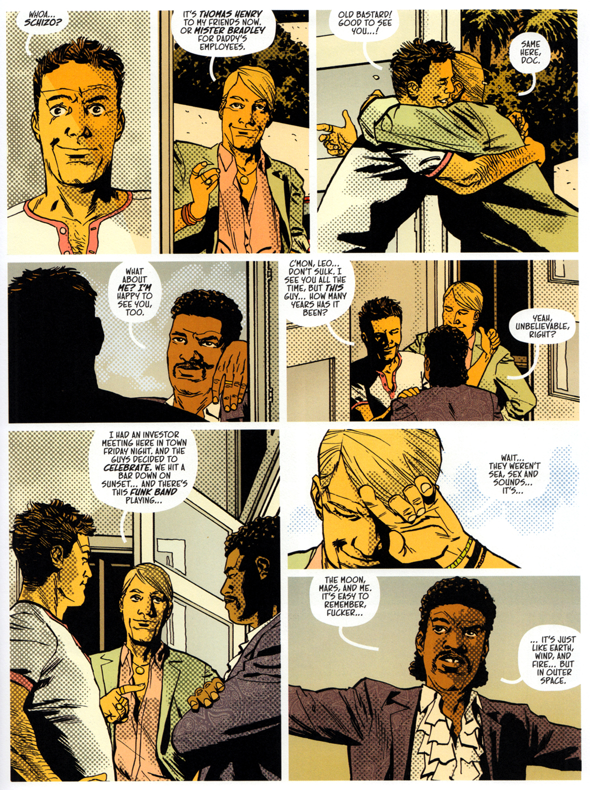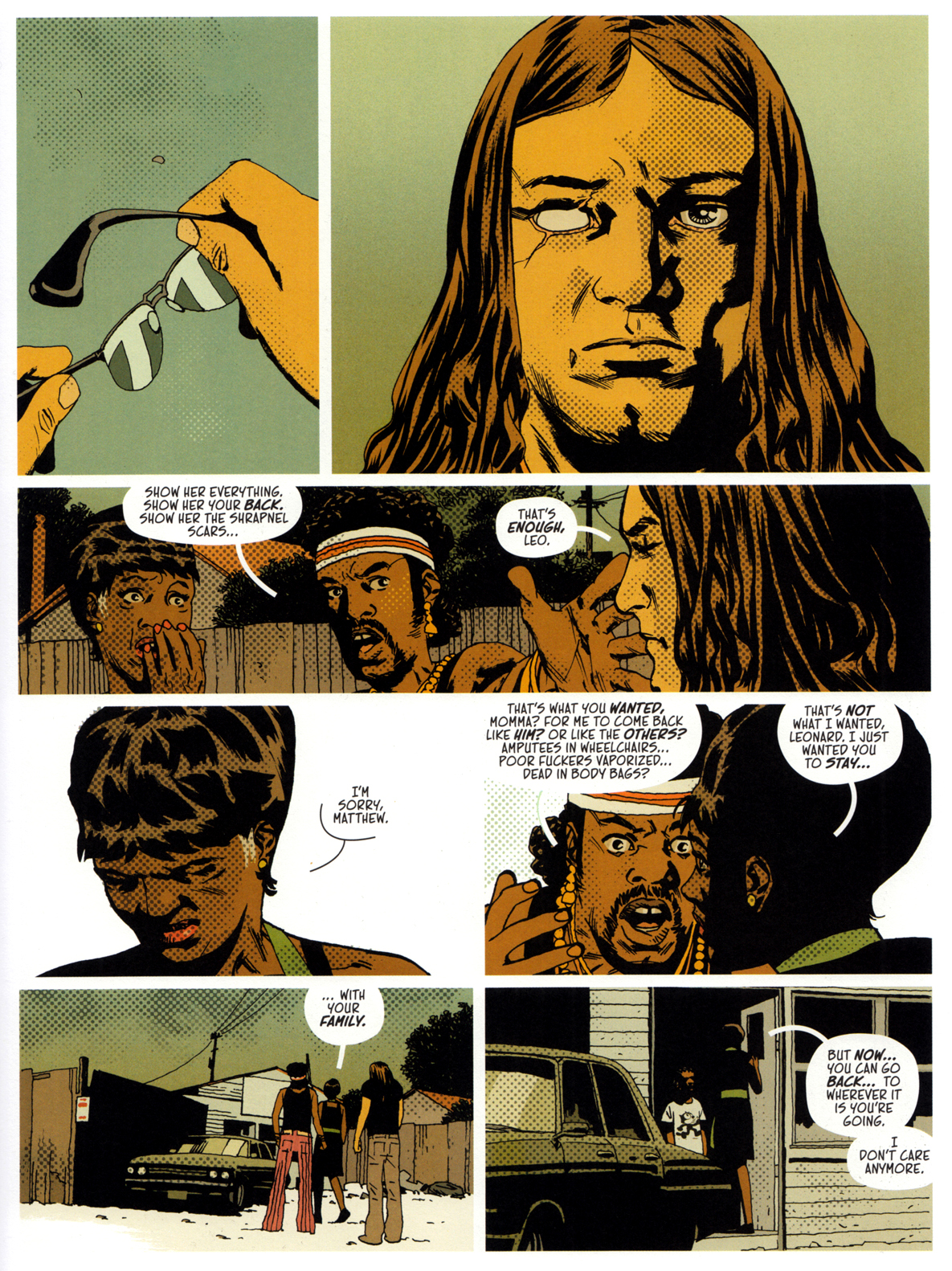 ALTAMONT verlässt die dokumentarische Ebene (die es für ein Drittels des Werks durchaus bedient hat) und führt seine Story mit den fiktiven Figuren zu Ende. Ein Epilog von 15 Seiten transportiert uns 13 Jahre in die Zukunft: 1982 treffen wir Doc, Leonard und Schizo wieder.